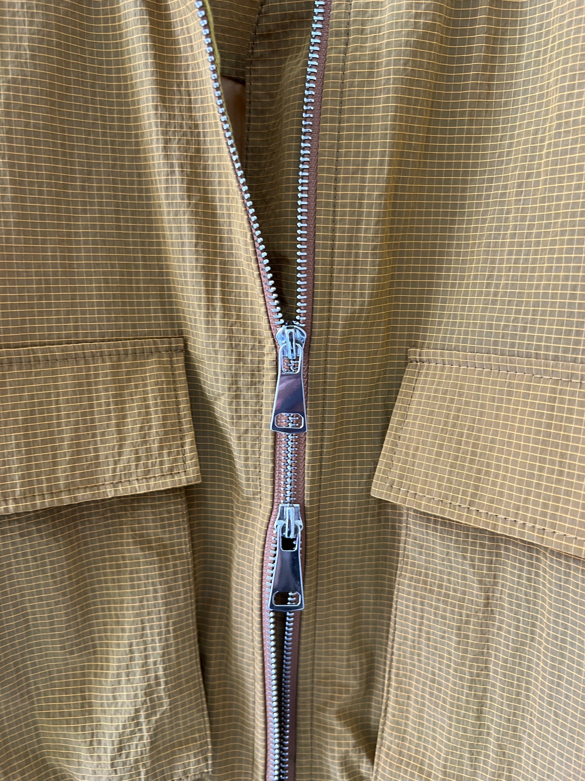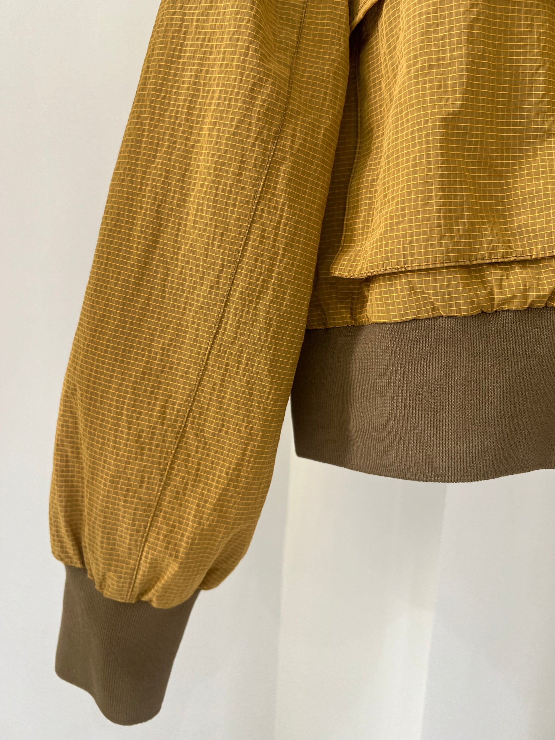 Brown Yellow Checkered Double-Pocket Cropped Jacket